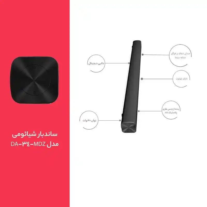 برند Redmi یکی از زیر مجموعه های کمپانی شیائومی بوده که سال هاست در زمینه تولید محصولات صوتی فعالیت داشته که هندزفری های آن حتماً معرف حضورتان است. حال این کمپانی پس از کسب موفقیت در ساخت نسل اول ساندبار های خود، دست به ساخت ساندبار MDZ-34-DA زده و با ارتقاء ظاهر و نقاط قوت نسل قبلی، محصولی بسیار با کیفیت را ارائه میکند. این ساندبار تنها 1.5 کیلو گرم وزن داشته و ابعاد آن به صورت 6.3 × 6.4 × 78 سانتی متر میباشد.