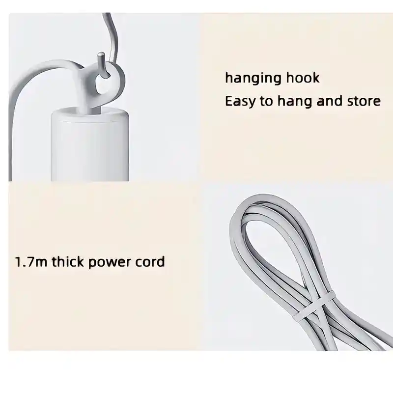 این سشوار پرتابل در دو رنگ سفید و صورتی به بازار عرضه شده است. یک گیره لاستیکی در قسمت انتهایی دسته سشوار تعبیه شده تا به راحتی سشوار را بر روی دیوار یا هر جایی که زائدهای وجود دارد، آویزان کنید. کابل برق سشوار 1.7 متر طول دارد و بدین ترتیب در هر شرایطی، آزادی عمل مناسبی خواهید داشت. این کابل ضخامت خوبی دارد و در برابر حرارت و کشیدگی مقاوم است.